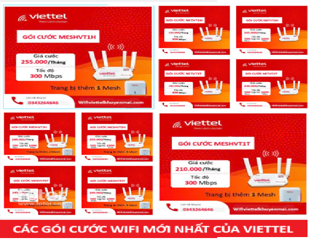 - Viettel cung cấp modem wifi 2 băng tần (2.4GHz + 5GHz) công nghệ wifi 6 tiên tiến, chuẩn AC hoặc AX tùy gói cước. Một số gói cao cấp có thể trang bị thêm thiết bị Mesh mở rộng sóng như MESHVT và MESHPRO.